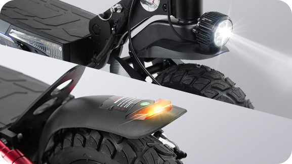 Bright headlight, rear safety light, deck ambient lights, and 360° illumination for safety and style.