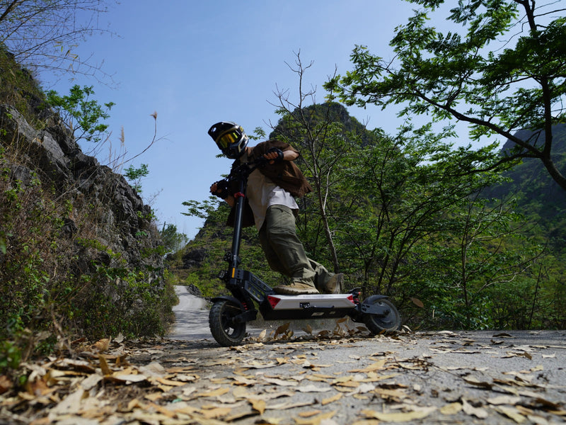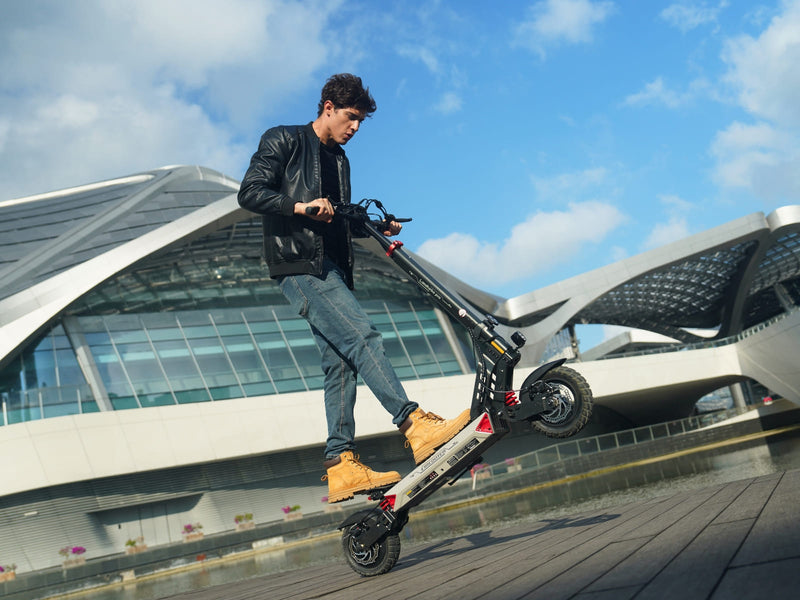 Glide over any terrain with dual suspension and 10" air-filled all-terrain tires.