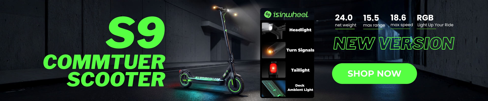 At isinwheel, there's a decent electric scooter, the S9 Max. The S9 Max is notable for its robust 500W front-wheel motor that offers three power modes, achieving a top speed of 20 mph.