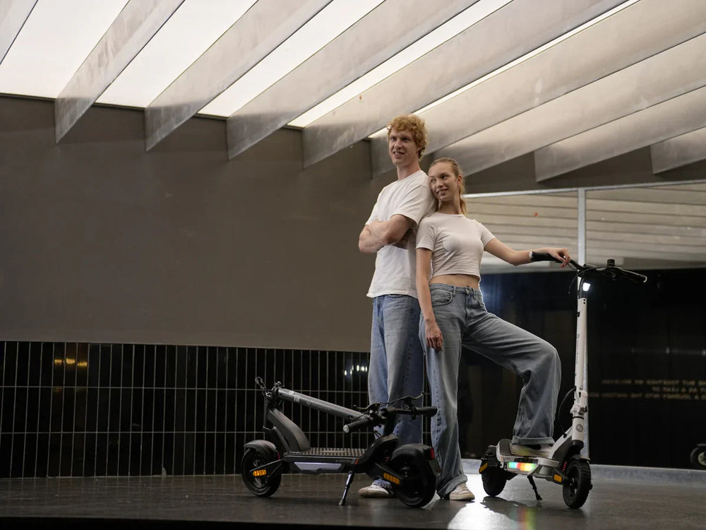 The GT1 provides 800W motor power, a 48V 10 Ah battery, and 45 km range, with a top speed of 45 km/h. Its front fork + rear suspension and 10″ off-road tires give excellent stability. At 23.8 kg, it offers more deck space for taller riders without sacrificing maneuverability. Supporting riders up to 150 kg, and equipped with dual disc + electronic brakes, the GT1 is designed for comfort, control, and long-lasting performance, making it an excellent choice for taller stunt scooter enthusiasts.