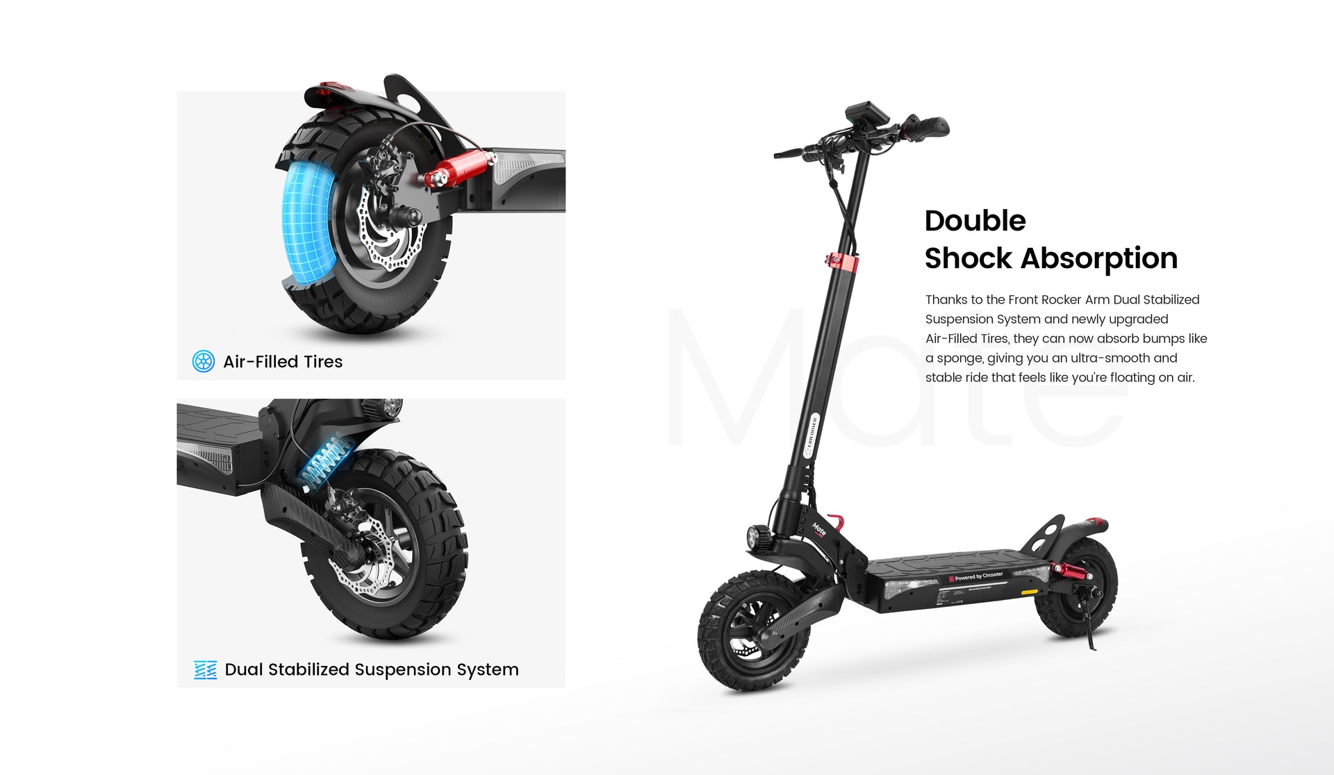 M2 is fitted with front and rear suspension to deliver a smoother and safer driving experience, allowing for easier maneuvering through bends.