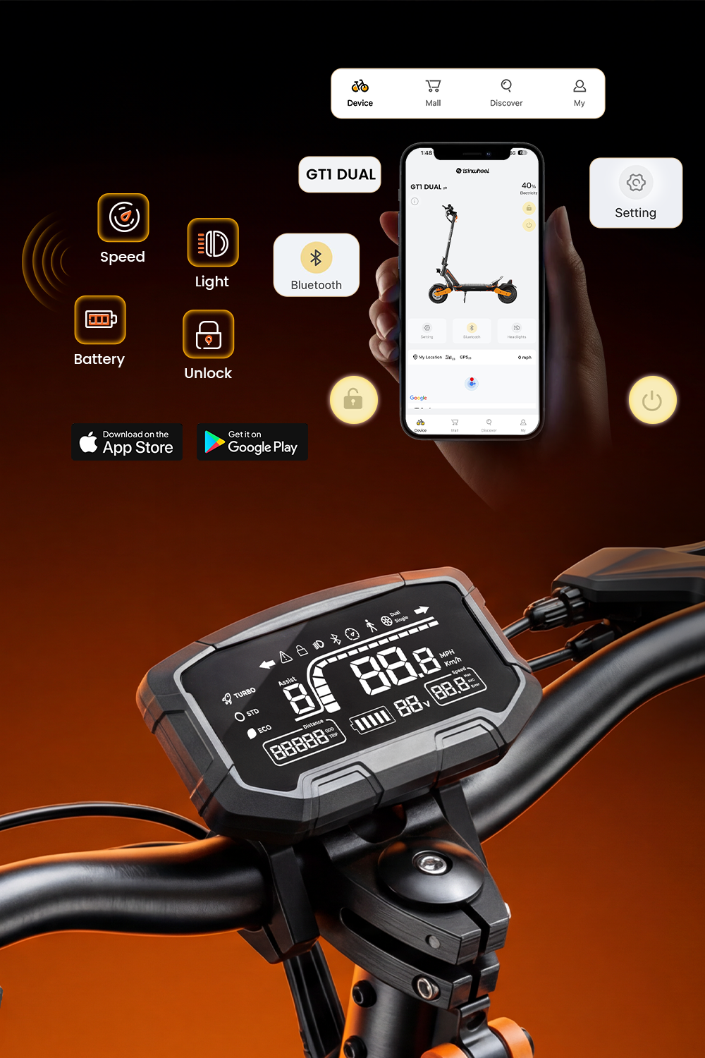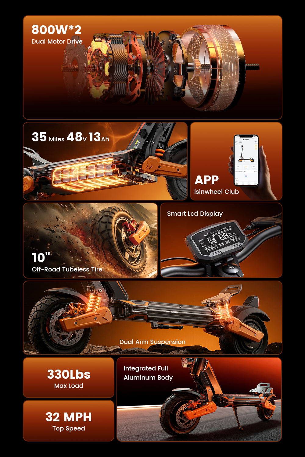 isinwheel® GT1 Dual Motor Off Road Electric Scooter 1600W