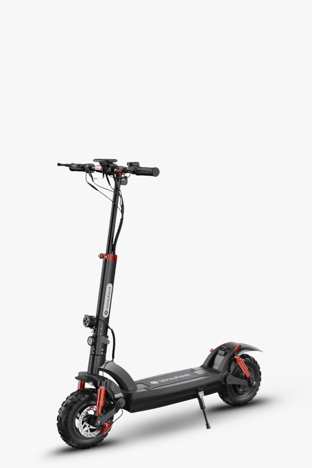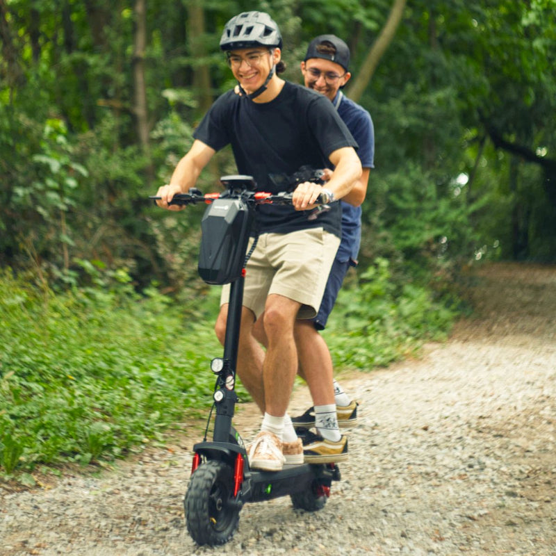 Foldable handlebar and stem, adjustable stem for users from 120 to 200 cm, and a wide deck for optimal comfort