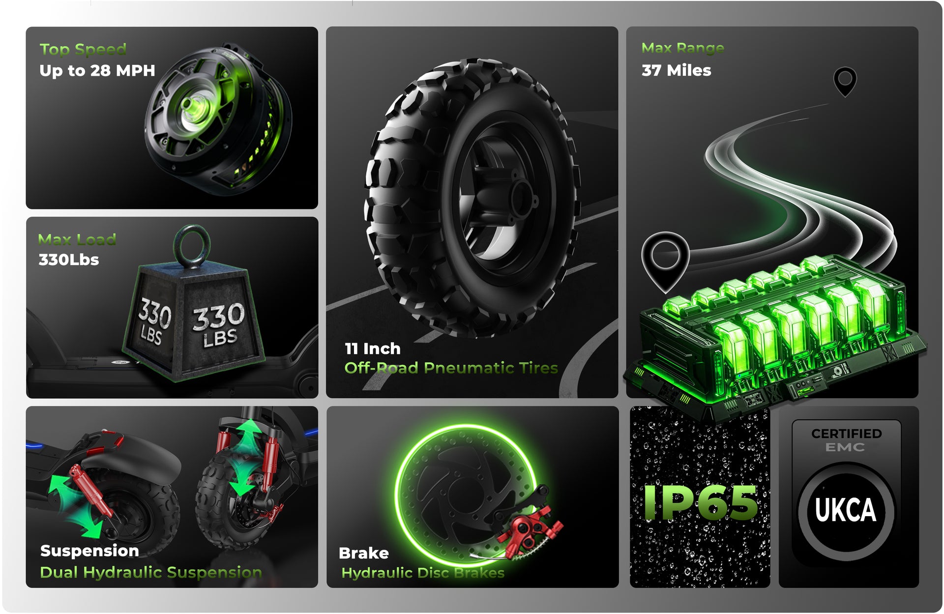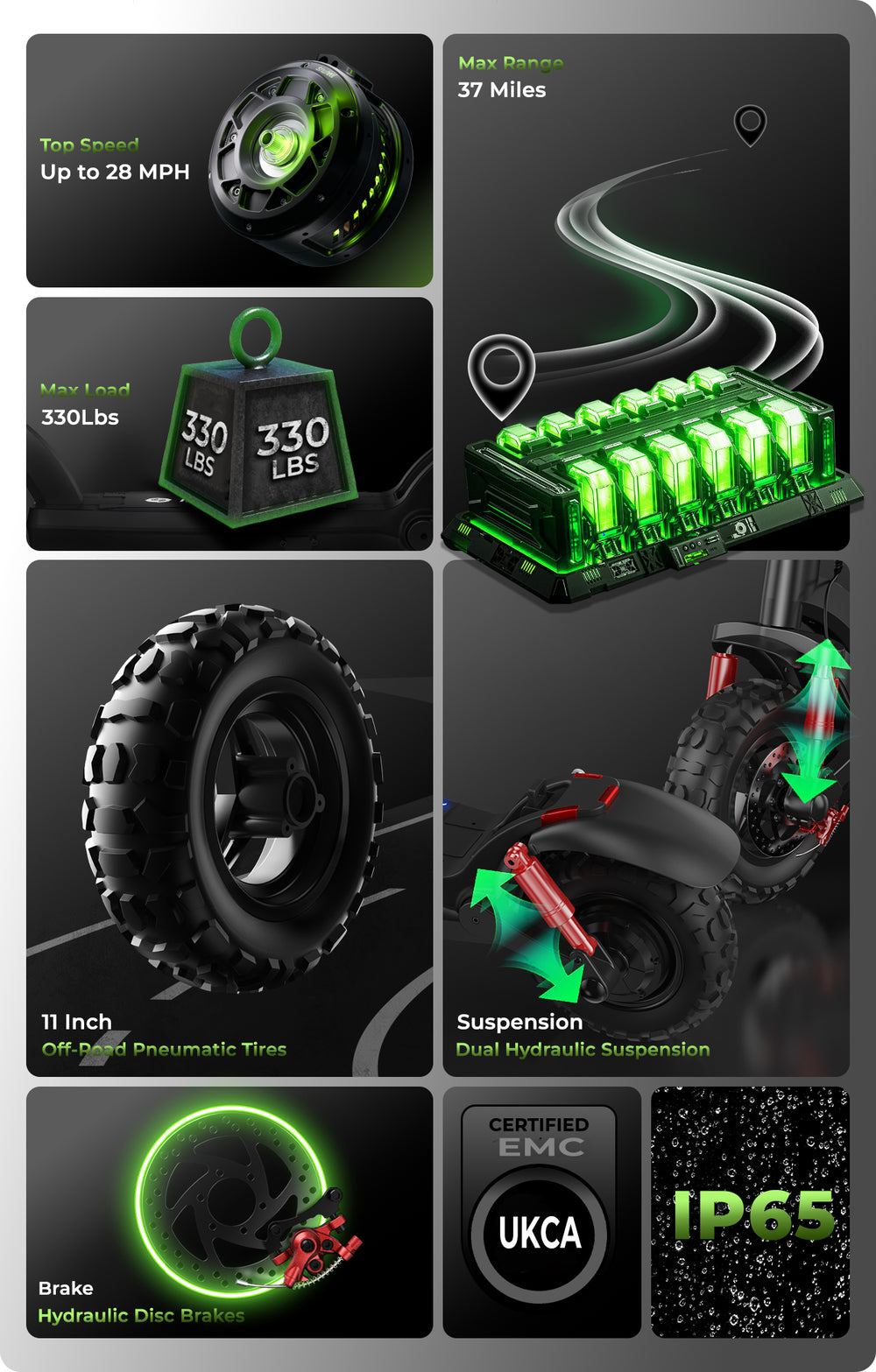 Max Range | 31-37 Miles (Eco-mode 50-60 KM) |