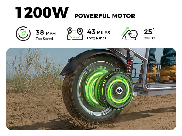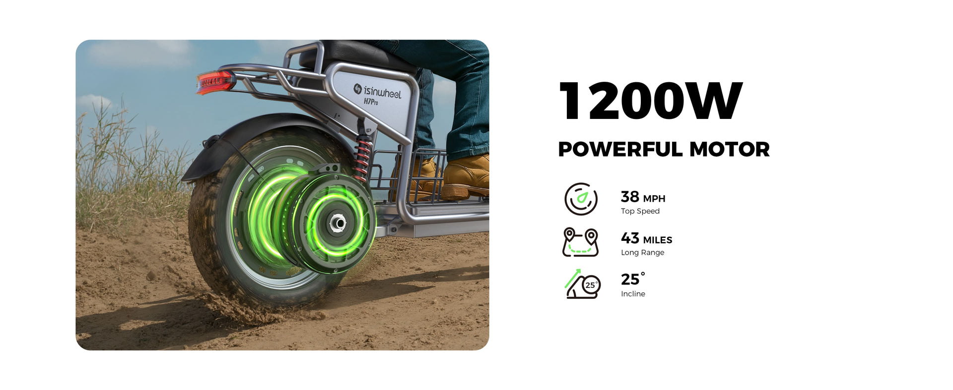 The H7Pro is equipped with a 1200W motor, delivering a top speed of 38 mph (off-road mode).