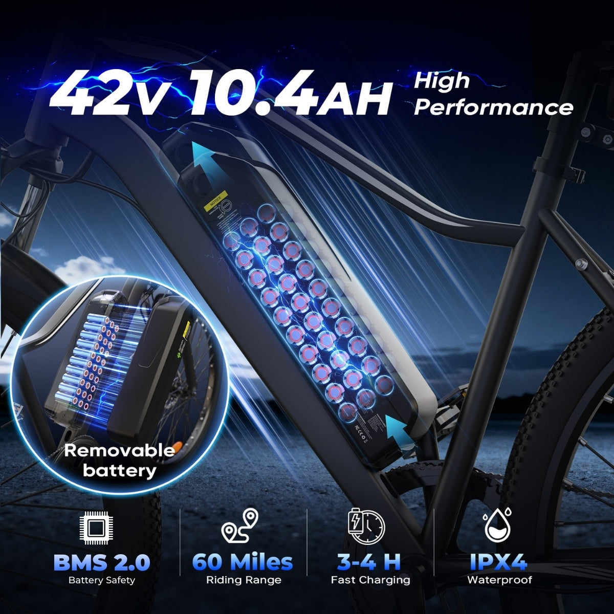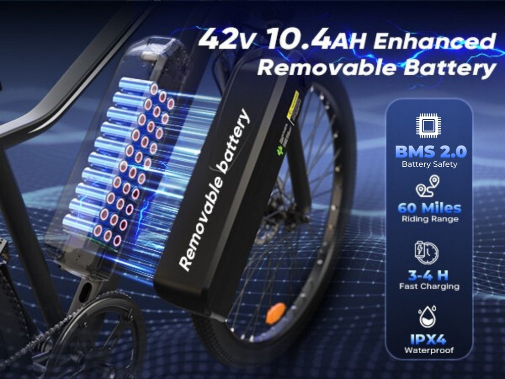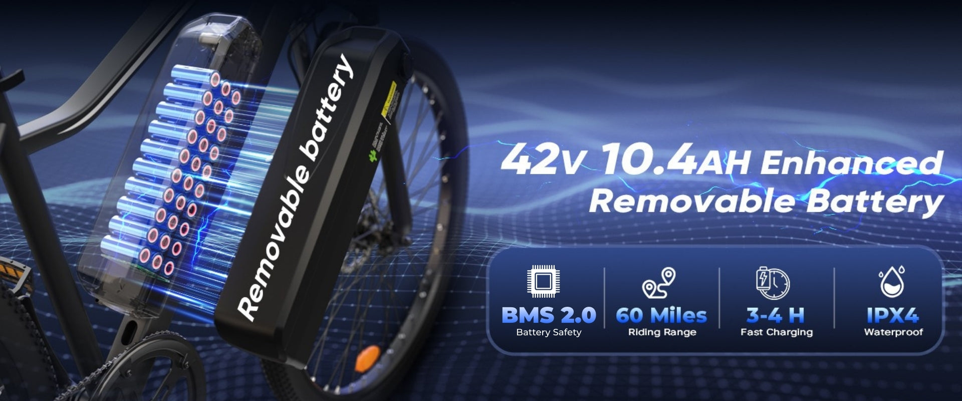 | Battery | 504 Wh (48V, 10.5Ah) lithium battery. |