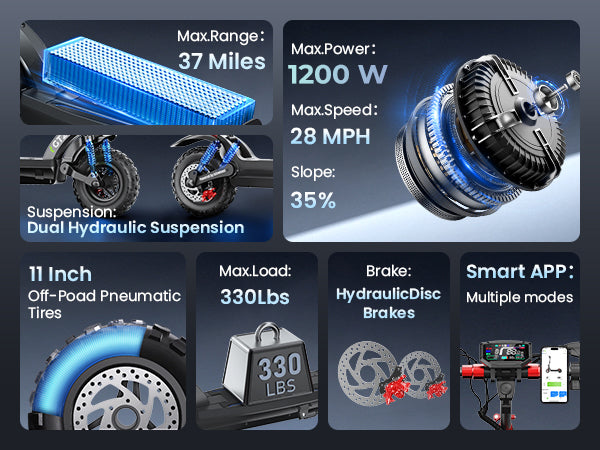 | Max Range | 31-37 Miles (Eco-mode 50-60 KM) |