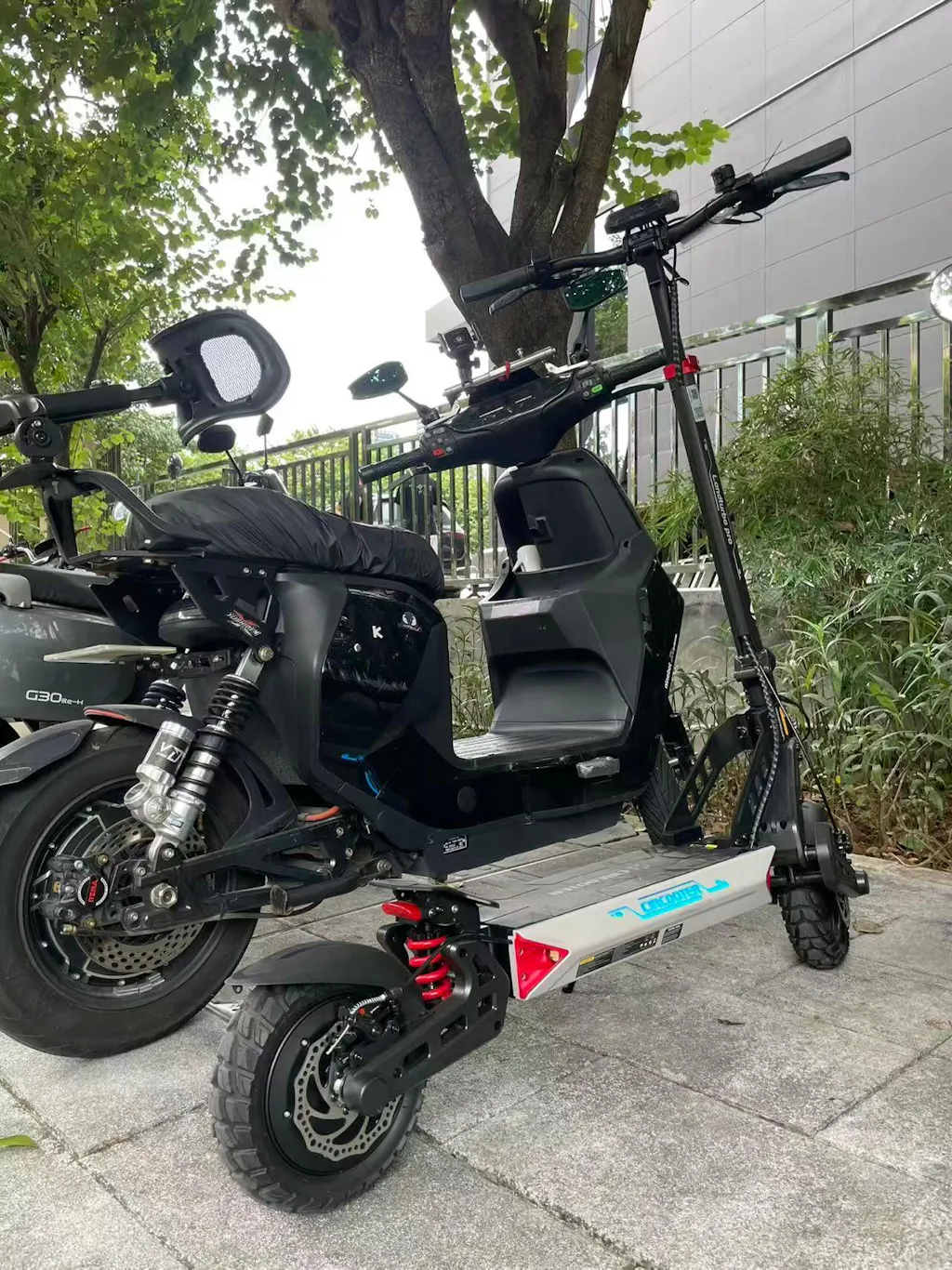 Front and rear disc brakes + hidden electronic brakes